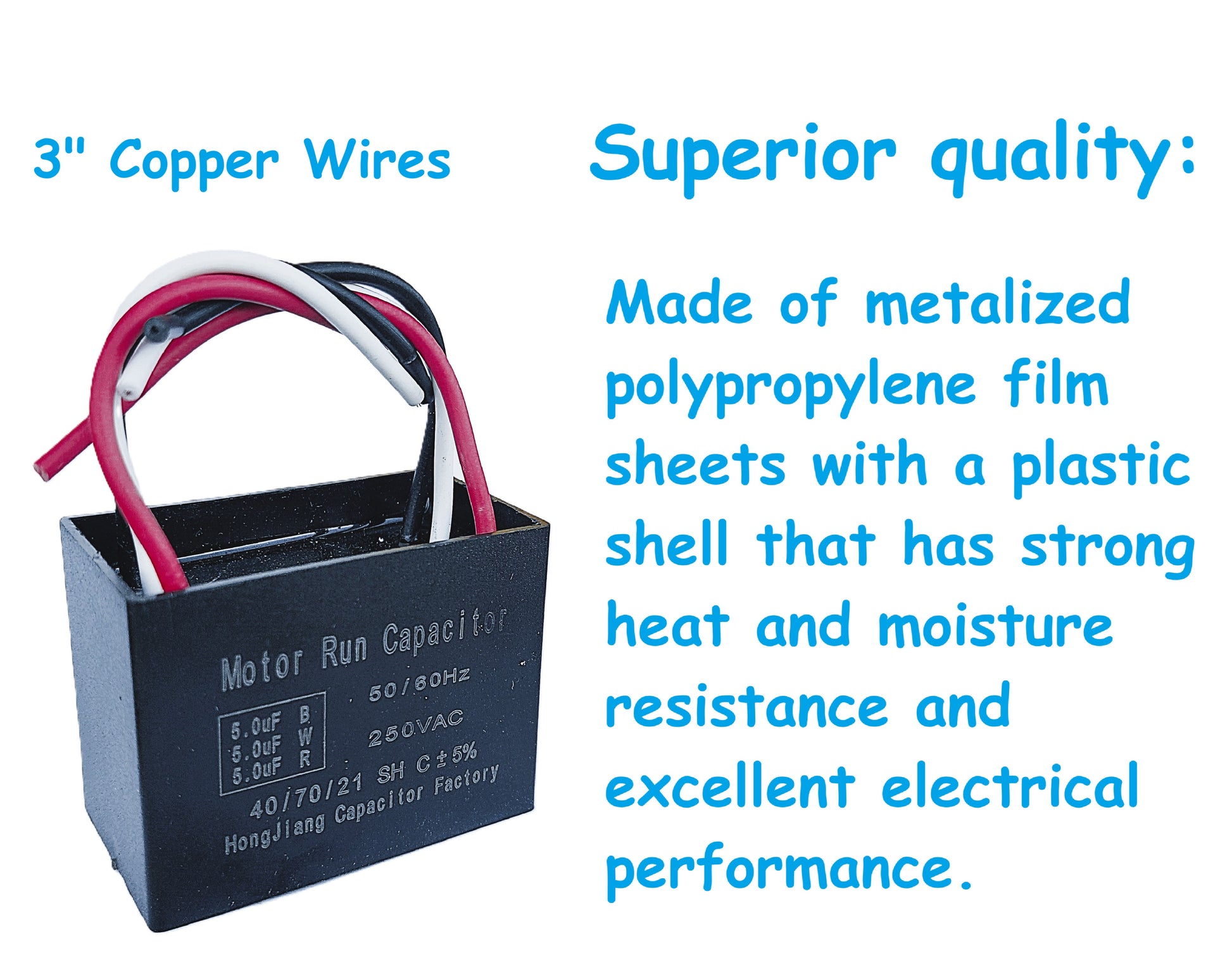 5uF+5uF+5uF (4, 5, or 6 Wires Compatible) 250VAC Motor and Fan Capacitor(CBB61) Replacement for New TECH, Ceiling Fan, Range Hood, Water Pump, Washing Machine, and Generator